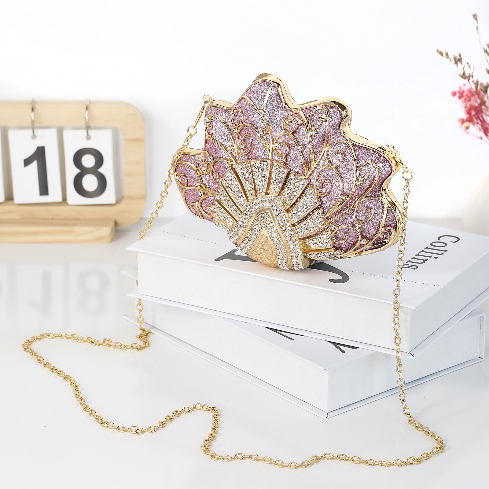 VAELON Shell-Shaped Rhinestone Evening Clutch – Luxury Hard-Shell Handbag for Weddings & Galas